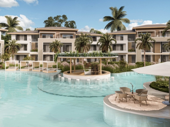 Proyecto mixto comercial residencial, que integra 12 aparta estudios y locales comerciales. A pocos minutos de caminata hasta la playa y acceso a casa club con múltiples amenidades dentro del complejo Estrella Gardens Village.